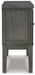 | Details | Made with hardwood solids, select acacia veneer and engineered wood, Antiqued gray finish, 2 cabinets, each with a center shelf, Shelves are removable and adjustable, Smooth-gliding drawer, Open cubby with wine rack divider, Assembly required | |