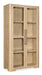 Serene and stylish with a modern allure, the Retreat Display Cabinet is a striking focal point piece. Crafted of Oak Veneers, it is finished in the sand-colored Dune, transparent by design to reveal the unique grain patterns of the wood veneer. Featuring softly-shaped bracket feet, it has tempered glass doors with magnetic catches and soft pewter bar pulls. Behind the doors, the top and bottom shelves are wood-framed glass and adjustable, while the middle shelf is wood-framed glass and fixed. There are plate grooves on all shelves, and two lights in the top with a three-intensity touch switch on the right side of the back panel.