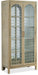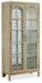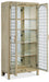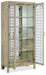 Create a calming resort-inspired retreat in your home with the focal-point-worthy Surfrider Display Cabinet. The circular patterned metal fretwork over tempered glass on the door fronts is a designer detail, along with an antique mirror back panel. Behind the doors are 4 adjustable wood-framed glass shelves illuminated by a 3-intensity touch switch. Crafted of Pecan Veneers, the cabinet is finished in the light natural Driftwood with distressing including sandblasting and bleaching.