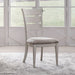 Elevate your dining experience with the elegant Backroads ladderback side chair. Meticulously crafted using Rubberwood solids, this chair features a Weathered White finish. It’s wide, slatted back with gracefully rolled top offers a classic silhouette, while the upholstered seat in flax polyester with a subtle textured weave ensures both comfort and style. The chair’s tapered legs add a touch of refinement, perfectly complimenting the sophisticated design of the ladderback. Ideal for adding timeless charm to any room, the Backroads ladderback side chair combines traditional craftsmanship with modern sensibility.