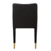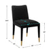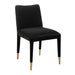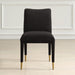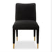Perfect for modern dining, this armless chair features sleek lines covered in an onyx polyester velvet accented with brushed brass ferrules.