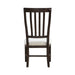 The Grant Park Slat Back Side Chair is crafted of Rubberwood solids in a rich Cappuccino finish. This stylish chair features a comfort curved cap rail and a padded seat upholstered in Gravel Linen fabric for a soft, inviting feel. Square tapered legs are fitted with nylon chair glides to protect your flooring.