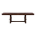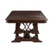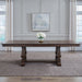 The Provence Park trestle table is a masterpiece of innovation and design that transcends the ordinary, redefining your dining experience with a perfect blend of style and functionality. Meticulously crafted using Rubberwood solids and Split Heart Hickory veneers, this table features a Chateau Brown finish. The star of this table is its self-storing 20-inch leaf, effortlessly integrated into the design on an easy glide leaf track system. Expand your dining space with ease, adapting to the evolving needs of your gatherings. The fancy face veneer top of the table showcases the meticulous craftsmanship, offering a visually striking surface that becomes a centerpiece in any dining room. The concave corners and bead molding accents add a layer of refinement, creating a table that is as elegant as it is practical. Each pedestal features two square turned legs adorned with a scrolled X-shaped poly resin accent, meticulously painted to resemble metal. The double pedestals, boasting shaped bracket feet, provide a sturdy foundation for the table. Connected by a center trestle, the design not only reinforces stability but also adds a sense of balance and symmetry to the piece. Elevate your dining experience with the Provence Park trestle table.