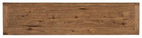 Warm and rustic with a silhouette that evokes the weight, heft and heritage of beam construction, the Big Sky Buffett is crafted of Pecky Hickory Veneers with a solid wood edged top. The buffet is finished in Vintage Natural, an organic finish that reveals the authentic knots and wood grain patterns. The four doors have soft-close hinges, and there’s one self-closing drawer and one adjustable shelf behind each pair of doors. The right side drawer has a removable felt liner and the left side drawer has a removable silverware tray. The interior is finished in Charred Timber, inspired by the restorative beauty of a fire-ravaged forest.