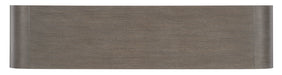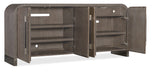 Sleek and stunning with a timeless sophistication and soft modern aesthetic, the Modern Mood Buffet combines Quartered Oak Veneers with raffia-wrapped doors, warm pewter brushed metal bar pulls accents. The Diamond Finish has crystal-like alabaster and pewter hues, offering a serene style. Features include 4 doors with soft-close hinges and magnetic catches, two adjustable wood shelves behind each pair of doors, ventilated back panels and wire management holes in the back panel and a 3-plug electrical outlet behind the right-side doors.