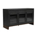 The perfect centerpiece for your transitional space, this gorgeous buffet piece packs all the style and storage you need. The deep ebony finish fits seamlessly with the rich brown base accents for an on-trend color combination. With three gorgeously receded glass front cabinets, adjustable shelves, and ample wine shelves, this piece delivers on style and storage. The decadent gleaming copper hardware brings an antique touch, making this buffet the showstopper in any space.
