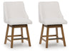 This counter height swivel bar stool sits comfortably at the intersection of modern lodge and farmhouse aesthetics. Your warm and welcoming disposition is reflected in its charming architectural elements and neutral textural fabric. Even with its poise, the stool remains practical. Its cushioned seat is covered in easy-clean Next-Gen Nuvella™ performance fabric, defining your dining room with reliable function and style.