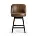 Bring style and comfort to your kitchen or bar area with this swivel counter stool. Crafted from solid parawood and upholstered in, durable top grain, it combines natural warmth with modern ease. The channeled seat offers all-day comfort, while the smooth swivel motion enhances functionality. Perfect for casual dining or entertaining, this counter stool elevates your space with timeless design and everyday practicality.