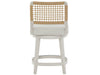 The Shoreline Swivel Counter Stool combines a Danish cord woven backrest with a comfortable Crypton Nomad Snow upholstered seat on a swivel base. This counter-height stool features a crisp Shoreline white finish and brushed stainless steel footplate, creating a perfect blend of coastal style and modern functionality.