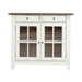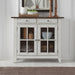 Bring both character and practicality to your dining space with the Al Fresco server. Crafted with excellence using Rubberwood solids and Pin Knotty White Oak veneers, this piece features a two-tone Graphite and Whitestone finish. The Al Fresco server is a true testament to the artistry of design and functionality. Adorned in a captivating two-tone finish, the server features wood and peg accents on the pilasters that evoke a sense of traditional craftsmanship. These details add a tactile and visual dimension, creating a piece that exudes warmth and authenticity. The combination of finishes not only enhances the server’s aesthetic appeal, but also ensures it seamlessly integrates into a variety of interior styles. The pilasters, with their wood and peg accents, impart a craftsman’s feel, creating a connection to timeless artisanal design. This attention to detail extends to the wood knob hardware on the drawers and doors, featuring a center metal insert that adds a touch of industrial charm while maintaining the server’s classic sensibility. The drawers, lined with felt for added luxury, provide a convenient and elegant space for storing dining essentials. The two wood framed glass doors, adorned with wood mullions, open to reveal an interior that is as thoughtful as it is visually stunning. Inside, discover one adjustable wood shelf, offering versatility for storage needs, and a contrasting planked back panel that adds depth and character. The top of the server, also planked, serves as an additional canvas for the tactile beauty of wood. Whether used for serving, or as a focal point in your dining area, the planked top contributes to the server’s overall charm. Elevate your dining experience with the Al Fresco server that seamlessly combines the beauty of craftsmanship, the convenience of storage, and the enduring appeal of the two-tone finish.