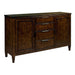 The Maris Buffet from the Elise Collection embodies sophistication and functionality. This elegant piece features two spacious doors concealing ample storage space, complemented by four drawers for organizing your dining essentials. Inside, four adjustable shelves offer versatile arrangement options to suit your needs. The top center drawer is thoughtfully equipped with a silverware tray, keeping your cutlery neatly organized and easily accessible. Crafted with genuine solid wood construction, the Maris Buffet combines the warmth of Alder with the strength of select hardwoods, ensuring lasting beauty and durability. Adjustable levelers provide stability on various surfaces, making this buffet a perfect fit for any dining area. The Maris Buffet seamlessly blends classic design with practical features, elevating both the style and utility of your home.