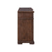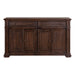 The Provence Park buffet is a stunning fusion of functionality and artistry that elevates your dining space into a realm of timeless elegance. Meticulously crafted with Rubberwood solids and Split Heart Hickory veneers, this piece features a Chateau Brown finish. The square turned pilasters, adorned with graduated bead molding, stand tall and proud, creating a sense of regality and adding depth to the buffet's overall design. The drawers and doors are framed with bead molding accents, showcasing a level of detail that sets this piece apart. The serpentine-shaped top, featuring three beautiful blue stone inserts, introduces a captivating visual element that adds sophistication to the buffet. These inserts not only provide a touch of color but also elevate the buffet's aesthetic, making it a centerpiece in your dining area. The two drawers, offering premium felt lining, provide a luxurious space for your delicate items. The four doors open to reveal one adjustable wood shelf behind each set, offering customizable storage to suit your needs. The removable felt-lined silverware tray adds a practical touch, ensuring your dining essentials are organized and easily accessible. The soft-closing drawer guides elevate the functionality of the buffet, ensuring a smooth and quiet operation that adds a touch of luxury to your dining experience. The Provence Park buffet is an investment in both style and substance.