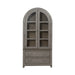 Designed to entice a sense of calm and tranquility into interior spaces, the River Place curio cabinet strikes the perfect balance of life on the coast and a comfy home tucked away in the hills. Crafted with Pine solids and veneers, this curio cabinet features a heavily distressed Riverstone Grey and Tobacco finish. The rounded profile is reminiscent of a cathedral arched window. There are two wood framed seeded glass doors with wood strip mullions. The doors open to reveal three wood framed adjustable glass shelves with plate grooves, perfect for allowing the touch LED lighting to shine through. The back panel is in the Tobacco finish and pairs well with the Riverstone Grey finish of the case. The base of the cabinet offers two full extension drawers with the added touch of soft closing drawer guides. The high-low veneer pattern of the drawer fronts and end panels add dimension. Heavy base molding draws attention to the angled tapered feet. Accented with custom Antique Pewter knob and bail pull hardware, the River Place curio cabinet creates an inviting airy atmosphere in your home while providing comfort in your own private getaway.