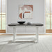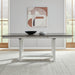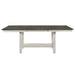 A masterful fusion of rustic charm and contemporary design, the Brook Bay gathering trestle table is destined to be the centerpiece of your dining space. Crafted with excellence using Rubberwood solids and Mindy veneers, this table features a two-tone finish with a Carbon Gray top and a Textured White base. The table boasts two 14-inch refectory leaves on each end, offering seamless expansion and contraction to accommodate gatherings of all sizes. Whether hosting intimate family dinners or entertaining a crowd, this table adapts effortlessly to your needs. The striking contrast between the Carbon Gray tabletop and the Textured White finish of the base adds visual interest and depth to the design, creating a stunning focal point for your dining space. The Carbon Gray top exudes contemporary elegance, while the Textured White base infuses a touch of rustic charm, resulting in a timeless aesthetic that complements any decor style. Square block legs provide sturdy support and lend a modern edge to the design, while the over-scaled center trestle adds a sense of architectural sophistication, anchoring the table with undeniable presence. Elevate your dining space or kitchen area with the Brook Bay gathering trestle table.