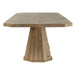 Made from solid reclaimed oak, this table features a beautifully crafted herringbone inlay on the tabletop, complemented by two striking geometric pedestal bases. The design seamlessly blends rustic charm with contemporary elegance. Solid wood will continue to move with temperature and humidity changes, which can result in cracks and uneven surfaces, adding to its authenticity and character. With two 12" leaves, this fixed base extension dining table features an adjustable dining surface that can vary from 90", 102", or 114".