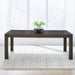 Bring bold style and everyday function to your dining space with the Cascade Falls Rectangular Leg Table, crafted of Rubberwood solids and Split Heart White Oak veneers in a rich Satin Espresso finish. This striking table features a 20-inch self-storing leaf with a smooth wood guide and metal gear track system, making it easy to expand for gatherings. The planked-effect tabletop is detailed with score lines and bread board veneer ends for added character. Over scaled block legs and a wide apron ground the design in clean, contemporary style, perfect for both casual meals and elegant entertaining.