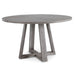 With clean casual styling, this dining table features a richly grained oak veneer inlaid top finished in a soft gray with hints of brown undertones, atop a sturdy elm wood trestle base. Solid wood will continue to move with temperature and humidity changes, which can result in cracks and uneven surfaces, adding to its authenticity and character.