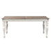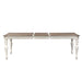 Gather in style with the Magnolia Manor rectangular leg table. Crafted of poplar solids with white oak and birch veneers, this piece features the perfect blend of European design with a weathered brown top accented by whitewash, one 18-inch removable leaf, a fancy face veneer dining top, canted corners, and is anchored by faceted turned legs. Warm antique finishes and artistic distressing along with grand scale a group to be passed to generations.