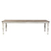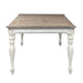 Gather in style with the Magnolia Manor rectangular leg table. Crafted of poplar solids with white oak and birch veneers, this piece features the perfect blend of European design, fancy face dining top finished in a weathered brown with whitewash, canted corners, two 18" leaves to easily accommodate guests or a large family and is anchored by faceted turned legs. Warm antique finishes and artistic distressing along with grand scale create a piece to be passed to generations.