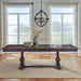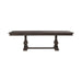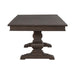 Forget dining out and make your home the best place to enjoy a meal with the Paradise Valley trestle table set. Crafted with excellence using Rubberwood solids and Split Heart White Oak veneers, this table features a Saddle Brown finish. The trestle table offers plenty of room to expand with the removable eighteen inch leaf on an Easy Glide leaf track system. Bead molding runs along the apron of the table that is sure to draw the eye to the double square turned pedestals supported by shaped bracket feet and a center trestle. The ends of the table top feature a bread board veneer pattern for an added design element. The Paradise Valley trestle table set captures grand opulence with comfortable rustic styling.