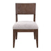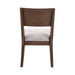 The Cascade Falls Panel Back Side Chair blends sleek design with everyday comfort. Crafted of Rubberwood solids in a rich Satin Espresso finish, this chair features a softly shaped panel back that offers both support and style. The padded seat is upholstered in Grey Mist Boucle fabric, adding a touch of texture and cozy elegance. Square tapered legs lend a clean, modern profile, while nylon chair glides help protect your floors—making this the perfect companion to the Cascade Falls dining table or as a stylish accent on its own.