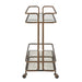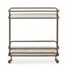 A bronze frame cradles both a clear glass top and an antique style mirrored base, offering an unobstructed view of your curated drink collection. Complete with rolling and locking casters.