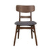 Sit in comfort with the Space Savers panel back side chair. Crafted of rubberwood solids and walnut veneers, this piece features a satin walnut finish, grey linen upholstery, a shaped cap rail, nylon chair glides to protect your flooring, and is anchored by beautifully splayed legs. This piece effortlessly adds a simplistic statement in any room.