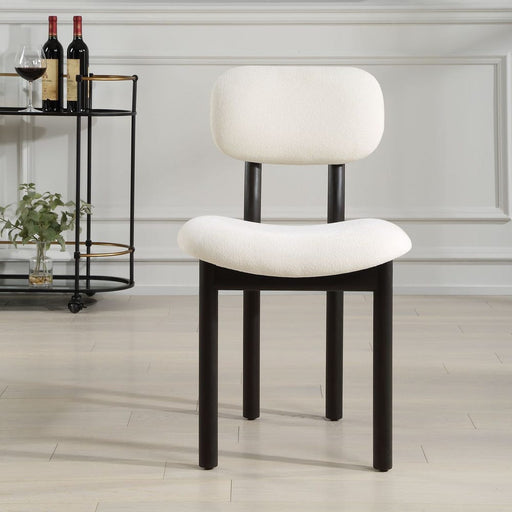 UttermostCrisp and classic style is featured in the soft wingback design of this dining chair, wrapped in an off white low pile boucle fabric with satin bla...