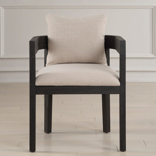 UttermostThis modern take on a klismos design features a curved rubber wood frame that has been wire brushed and rubbed in a charcoal black stain, paired wi...