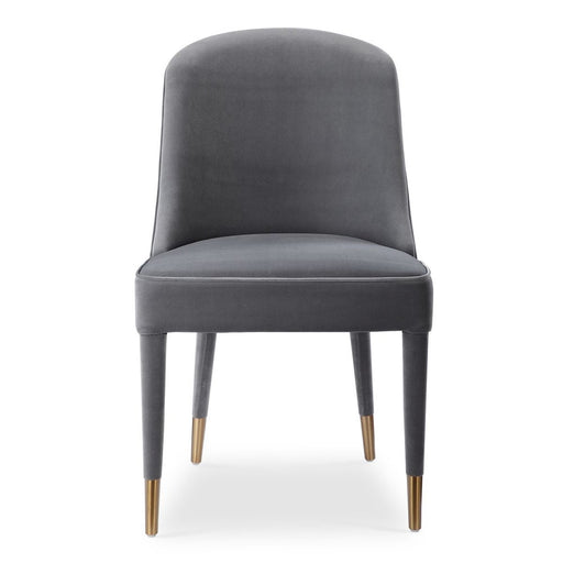 UttermostPerfect for modern dining, this armless chair features sleek lines covered in a light gray velvet with welted trim and accented with brushed brass ...