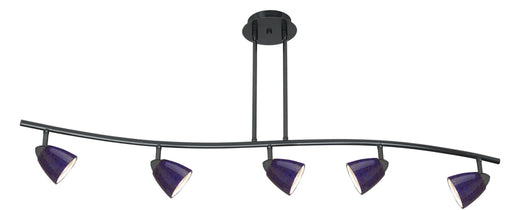7.25-19.25" Height Adjustable Metal Serpentine Five Light Ceiling Fixture - Blue With Spots & Dark Bronze