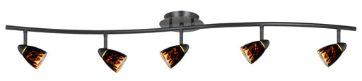 7.25-19.25" Height Adjustable Metal Serpentine Five Light Ceiling Fixture - Amber & Dark Bronze