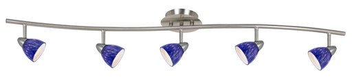 7.25-19.25" Height Adjustable Metal Serpentine Five Light Ceiling Fixture - Blue With Spots & Brushed Steel
