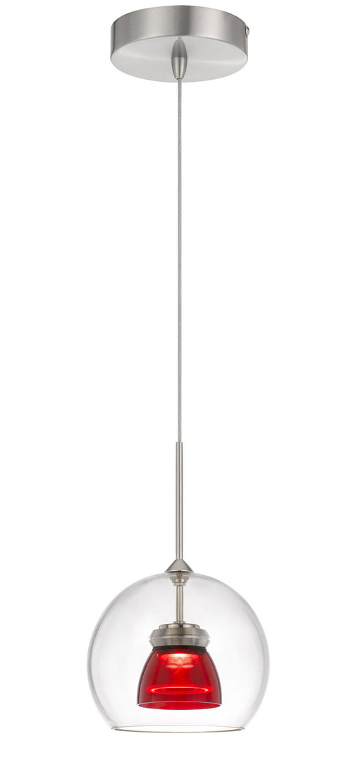 7.5" Height Glass and Metal Led Pendant With Brushed Steel Cord - Red