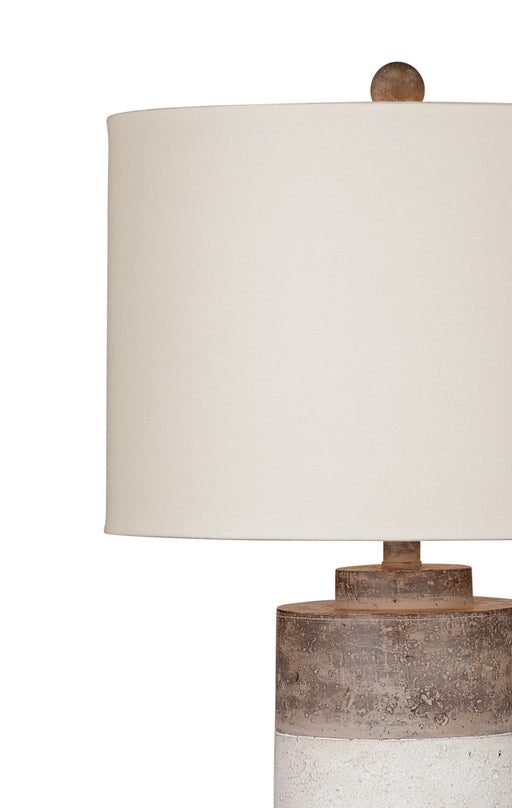Bassett MirrorThe Tano Table Lamp is crafted of cement with a drum shade. Finished in gray with antique brass accents.Product Features This gray table lamp featu...