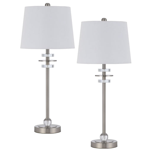 Cal LightingThis pair of brushed steel metal and crystal buffet lamps are the perfect addition to any console taProduct Features Durable Metal and Crystal Cons...