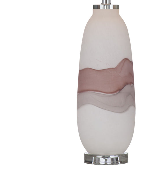 Bassett MirrorThe Benin Table Lamp features an art glass body with a white linen tapered shade. Finished in matte white, mauve, and gray, this lamp harmonizes a ...