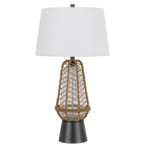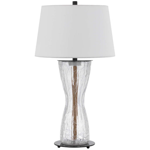 Cal LightingUpdate your decor with this stylish crackle glass table lamp. This elegant table lamp features a cinched hourglass design with a woven rope interio...