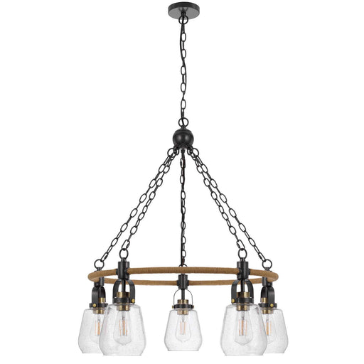 Cal LightingThis chandelier is the pefect touch to any kitchen, living room or foyer. It features a sturdy black metal frame with roped accents and clear glass...