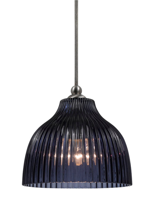 4.7" Height Glass and Metal Pendant With Brushed Steel Cord - Blue Violet