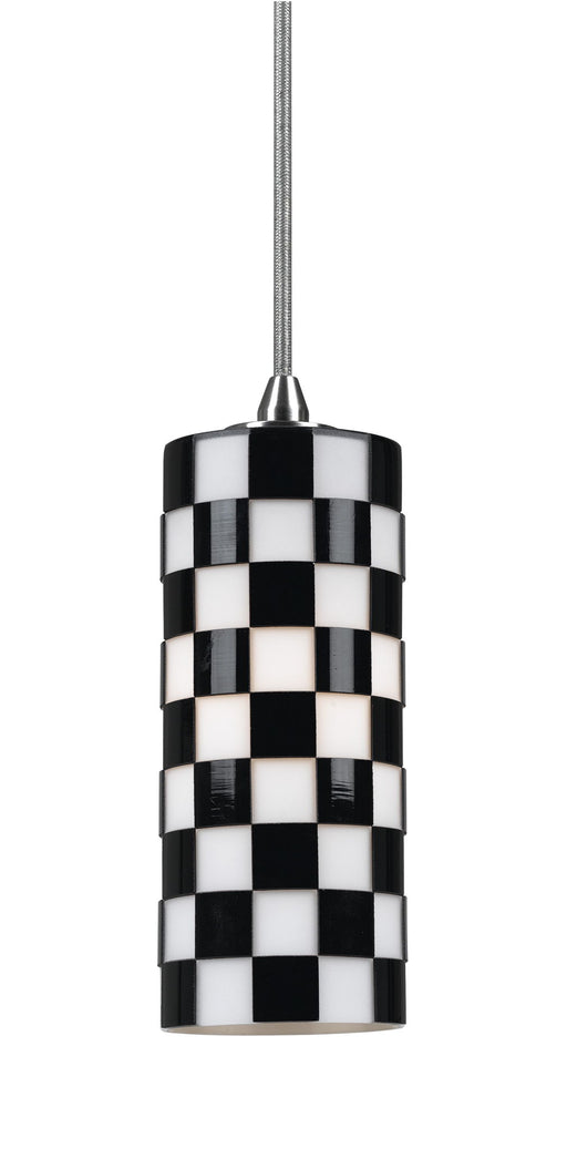 8" Height Glass and Metal Pendant With Brushed Steel Cord