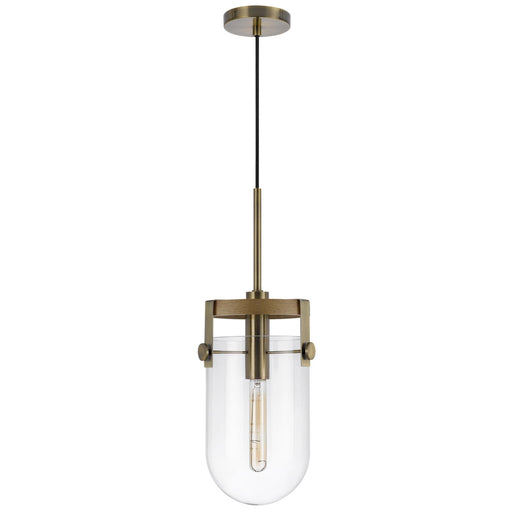 Stovall - 1 Light 21" Height Metal Pendant - Antique Brass / Oak