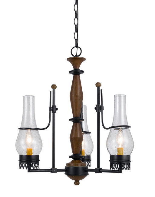 Cal Lighting60W x 3 Silverton Metal/Wood 3 Light Chandelier With Glass Shades. (Edison Bulbs Included)Product Features Durable Metal and Wood Construction Clea...
