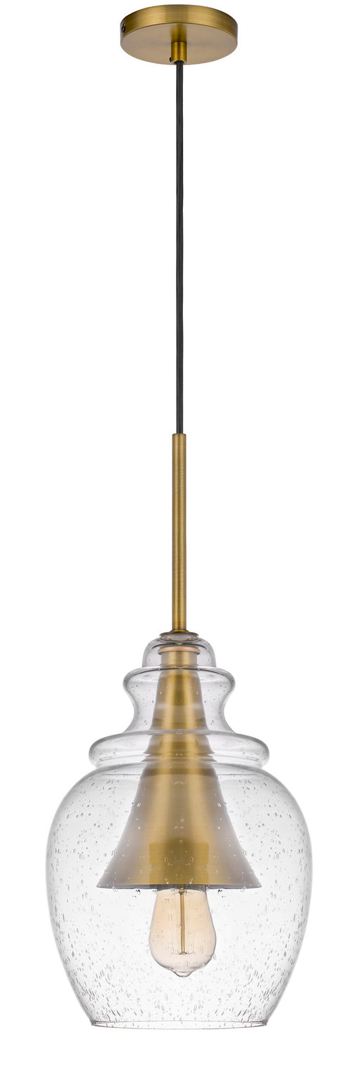 Cal LightingGirona Glass Drop Pendant With Metal Cone AccentProduct Features Durable Glass and Metal Construction Seeded Glass Shade Antique Brass Fluted Accen...