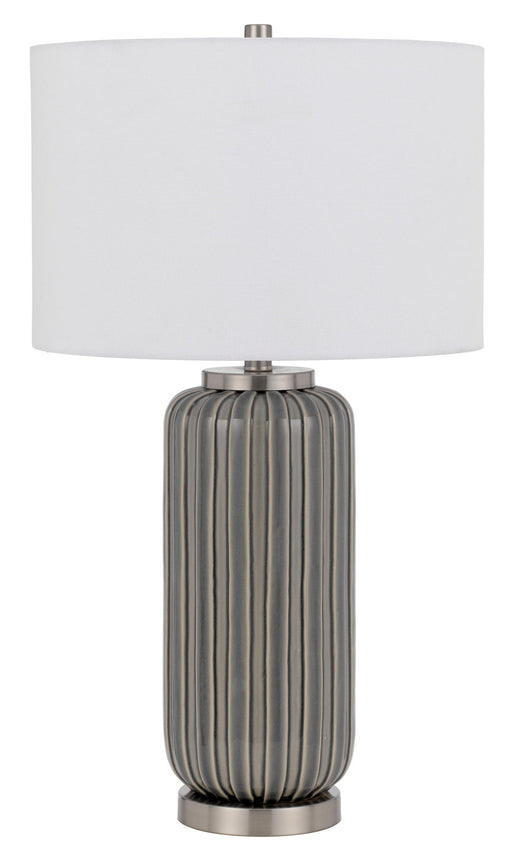 Cal LightingRodano Ceramic Table Lamp With Hardback Drum ShadeProduct Features Durable Ceramic Construction Striped Finish 150W Three Way Switch Durable Hardba...