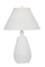 The Brentwood Table Lamp blends traditional charm with delicate detailing. Its matte white base features a raised floral motif that adds texture and elegance, while the unique fabric shade offers a soft, graceful finish. A timeless piece with a refined, precious feel.