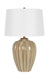 • The beige ceramic lamp base provides a modern traditional aesthetic