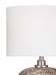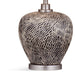 The Charlotte Table Lamp is crafted of ceramic with a raised black and ivory finish, silver accents and a drum shade.