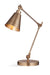 The Del Norte Desk Lamp features a brass body, shade and base. Constructed of iron and aluminum and features 3 adjustable hinges for ideal lighting positioning.