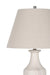 The Eastlake Table Lamp exudes a quiet elegance with its ceramic cream lamp body, offering a smooth, subtle texture and a soothing color that can blend into various decors. The body's gently tapered shape is both graceful and poised, creating a sense of delicate sophistication. This is topped with a fabric lampshade in a matching hue, which diffuses light to cast a warm and inviting glow, perfect for creating a cozy and relaxing ambiance in any room. The neutral cream color and the simple yet chic design make the Eastlake Lamp a versatile addition to any living space.